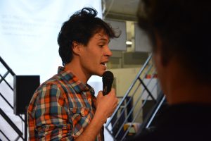 Pour l’occasion, Corentin de Chatelperron, président et aventurier de l’association a mis le pied à terre et Camille, responsable transmission/vulgarisation a le crayon a la main : durant toute la conférence, elle devra mettre en dessin les paroles avant qu’elles ne s’envolent. L’assistance est invitée à inscrire sur des post-il leurs idées qui passent et à venir les déposer sur le dessin à l’issue de la conférence.