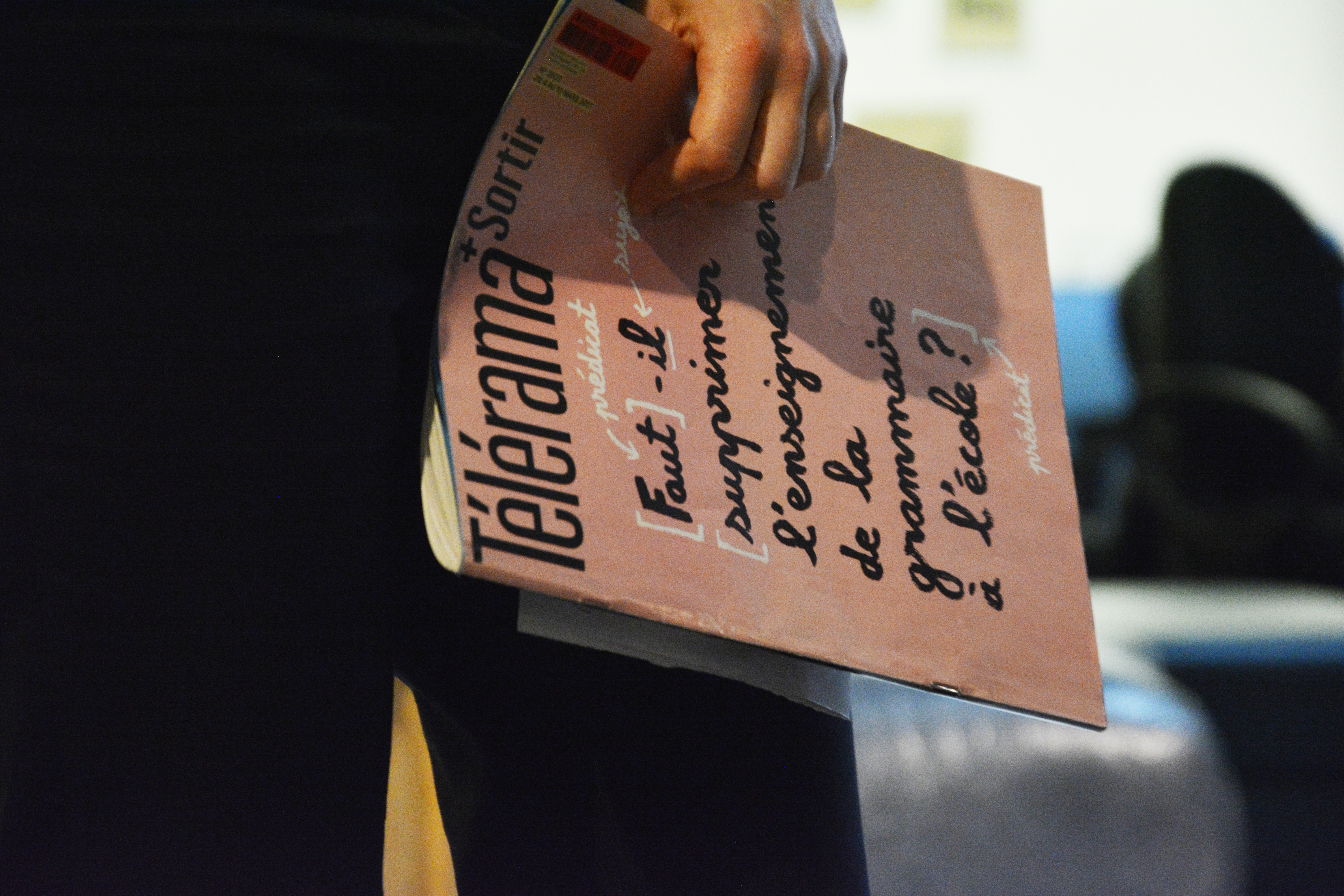 En arrivant hier, je suis passée devant un kiosque à journaux et j’ai lu la couverture du Télérama : « Faut-il supprimer l’enseignement de la grammaire ?« . Apparement, l’enseignement en France va mal ! Alors grosse réforme de fond ! Parce que la grammaire c’est le fond du problème non ?