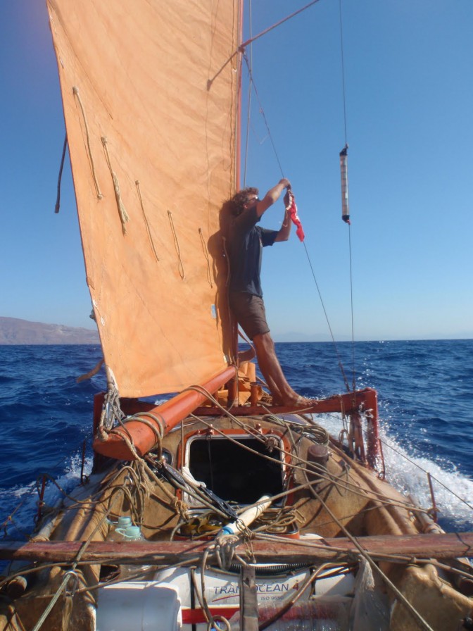 Arrivés à Fethiye, Sina a laissé place à Aurélien qui va m’aider à traverser la mer Egée avec ses îles grecques et les rafales du Meltem. Samedi après-midi, après deux jours de nav en zigzags au près serré, une houle et un vent instable se sont levés. Le petit moteur chinois démarré pour rejoindre un abri nous a vite lachés en pleine nuit à cause de son joint de culasse Soudanais. Nous avons passé Dimanche dans une petite crique d’un camp root turc à réparer le moteur et nettoyer la coque (Tara-tari s’est fait mazouter). Nous quitterons la Turquie dans deux jours direction le Péloponnèse.