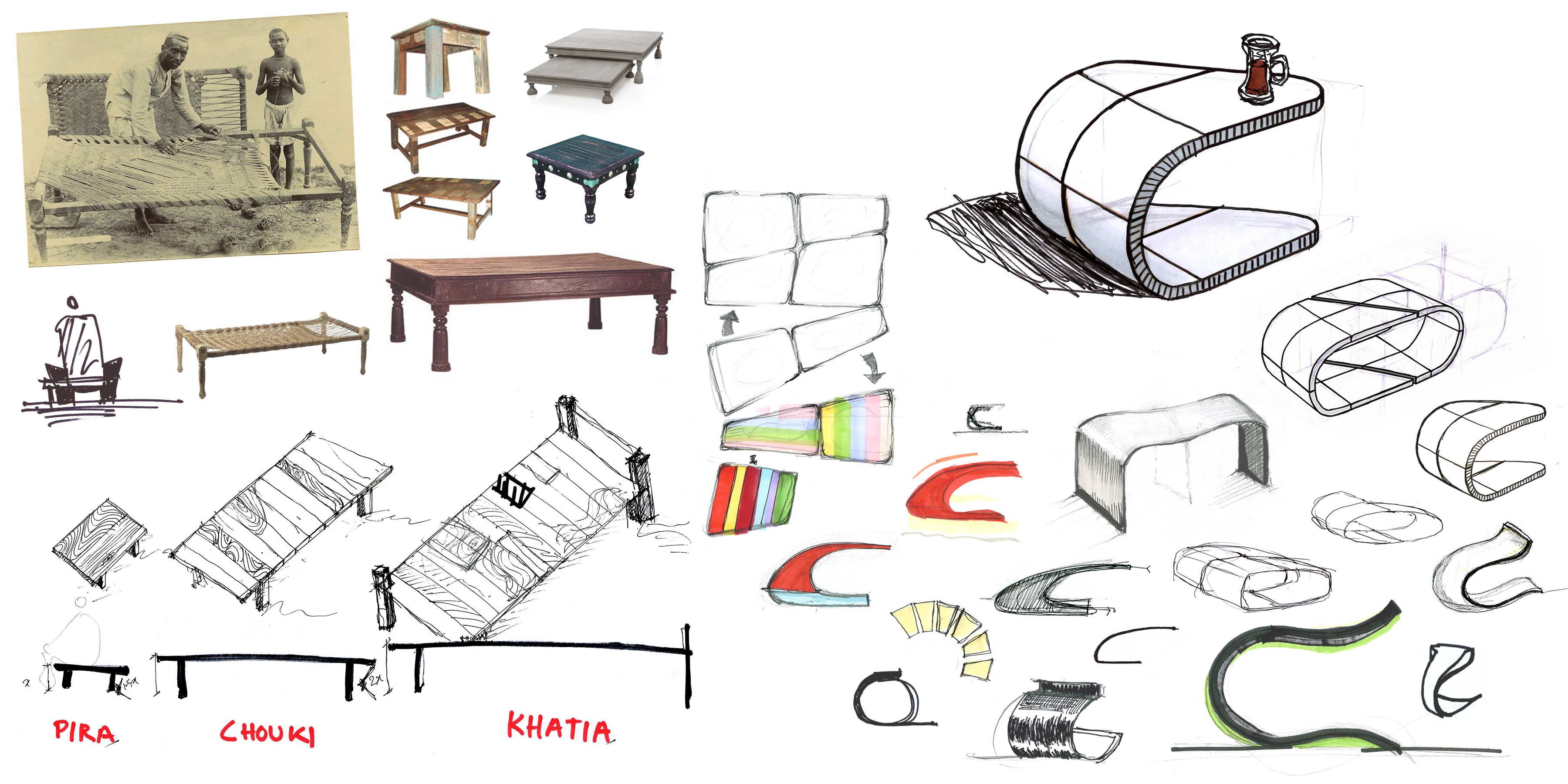 Enfin, même si on peut imaginer tout une gamme d’éléments Khatiya de tailles et d’usages différents qui reprennent cette silhouette (banc, lit, etc.), le choix d’une première version assez basse pour être considérée comme un repose pied en occident alors qu’elle sera toujours prise pour une véritable assise en asie, soulève également la question des différences culturelles qui nuancent des schèmes d’usage aussi simples que le fait de s’asseoir.