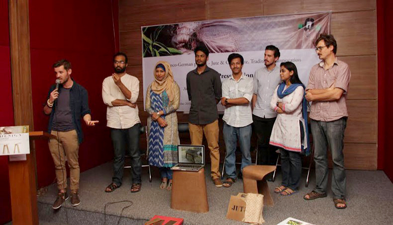 Pour rappel, dans le cadre d’un projet du fonds culturel franco-allemand, ce concours a pour double objectif de sensibiliser le plus grand nombre aux applications composites de la fibre de jute, et de faire collaborer des industriels, de jeunes talents bangladeshi, et des intervenants “bideshi” (“étrangers” en bengali) autour de la création de deux pièces de mobiliers. Celles-ci seront ensuite prototypées en matériau composite par le Jute Lab et présentées lors de l’inauguration de l’ambassade franco-allemande de Dhaka en 2017.