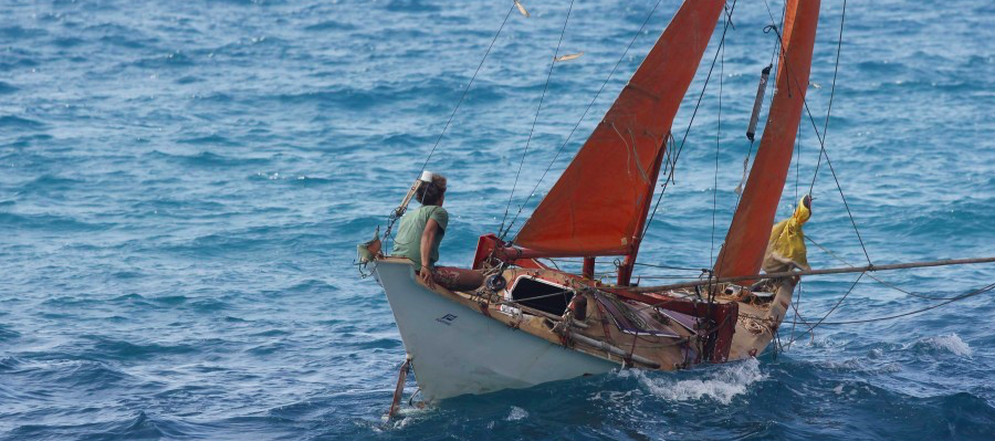 Le 17 août dernier à la Ciotat, Corentin a effectué une arrivée remarquée à la barre d’un voilier à la silhouette étrange et au terme d’un aller simple via l’Océan Indien et la Mer Rouge…